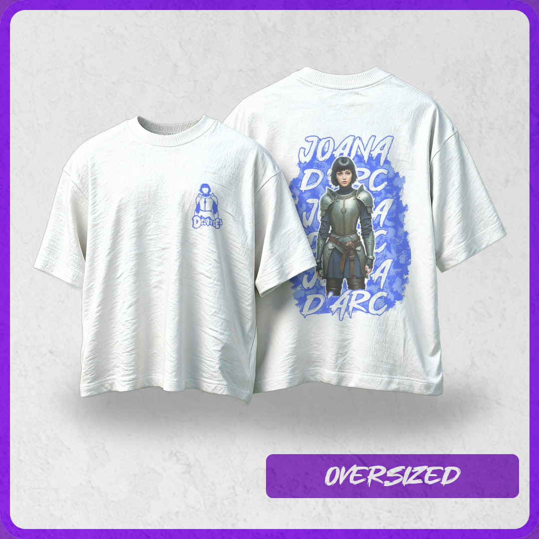 Celebre a fusão do sagrado com o moderno com a coleção "Urbano Sagrado". Esta peça apresenta uma ilustração estilizada de  Joana D’arc, destacando-se em um design contemporâneo. Feita em tecido de alta qualidade, esta camiseta oferece conforto e estilo para o seu dia a dia. Perfeita para expressar sua fé com um toque de modernidade.
