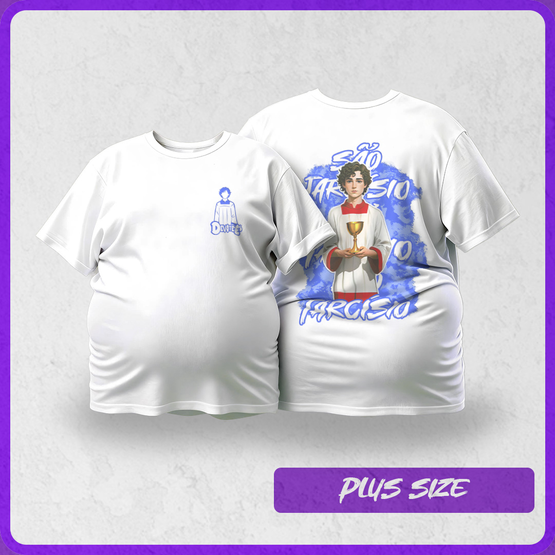 Celebre a fusão do sagrado com o moderno com a coleção "Urbano Sagrado". Esta peça apresenta uma ilustração estilizada de  São Tarcísio, destacando-se em um design contemporâneo. Feita em tecido de alta qualidade, esta camiseta oferece conforto e estilo para o seu dia a dia. Perfeita para expressar sua fé com um toque de modernidade.